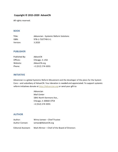 Advancian is a global Systemic Reform Movement and the developer of the plans for the System